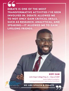 It is not enough for coaches to simply say anyone can join the speech and debate team. Coaches must also actively recruit Black students and foster anti-racist teams. Our NSDA Learn course Engaging and Mentoring Black/African American Students features distinct strategies for engaging and mentoring Black students as a Black coach and as a non-Black coach. Learn to intentionally recruit Black/African American students (and assistant coaches and judges!), create solid parent-coach connections, build an anti-racist team, advocate for students, build equitable relationships, and recognize race while coaching. Members can enroll today for free and take the course at their leisure.