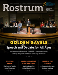 Access our digital archive of current and past Rostrum issues below. Past publications are preserved for historical reference. The views and language found in these archives do not necessarily reflect the current mission, values, or commitments of the National Speech & Debate Association.